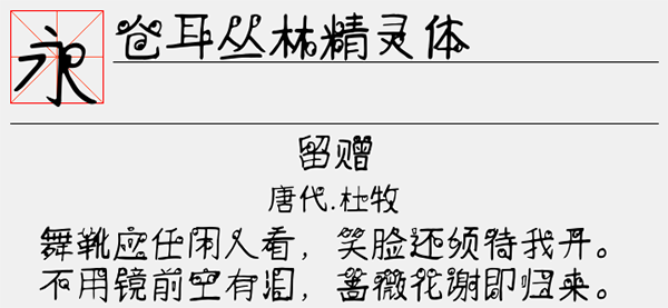 仓耳丛林精灵体是一款风格独特的手写艺术字体,其字体将字形上的部分笔画变为大小不一的眼睛,让字体似乎有了生命一般,每个字都更像是一个个的丛林小精灵。并且结合字体的形态相对应的调整眼睛方向,搭配粗细多变的笔画,给了字体更加生动的形态展现,具有很好的视觉感,且字库完整,可以很好的应用于文本装潢、信息展示、网页设计、篆刻制模、数据制作、装潢设计、计算艺术设计、视觉设计、字帖等一切合法应用场景,有喜欢的朋友可免费下载收藏。
