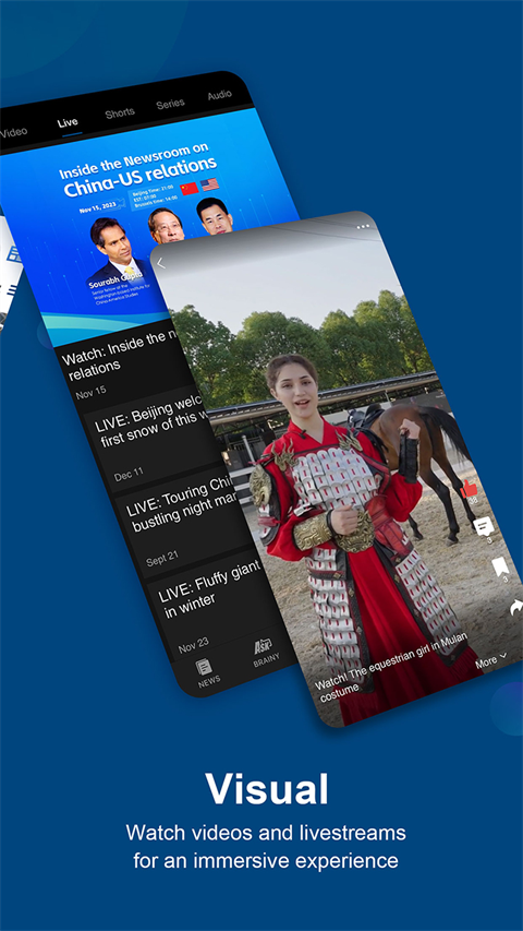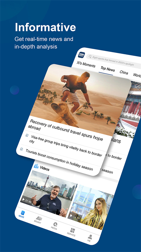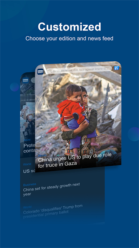 1、获取有关中国和世界的实时更新。 2、尝试新的移动指南,帮助您了解中国的生活。 3、测试您的说话技巧。 4、用英文或中文阅读您的新闻。 5、选择您喜欢的版本和新闻源。软件亮点