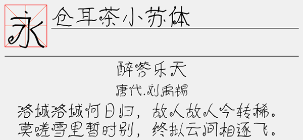 仓耳茶小苏体字体是一款清新可爱的美术字体,该字体近似大波浪的笔画和偶尔点缀的小圈,让字体带来一种浪漫自由的感觉,用硬笔书写,运笔流畅有力,这款字体更加追求一种自由浪漫的风格,运用大波浪的笔画书写创作,加上偶尔的小圈进行点缀,让字体的变化更加丰富。可以很好的应用于文本装潢、信息展示、网页设计、篆刻制模、数据制作、装潢设计、计算艺术设计、视觉设计、字帖等一切合法应用场景,有喜欢的朋友可免费下载收藏。