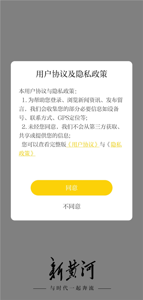 1、从本站下载新黄河app,安装直接进入软件即可,同意软件安装协议