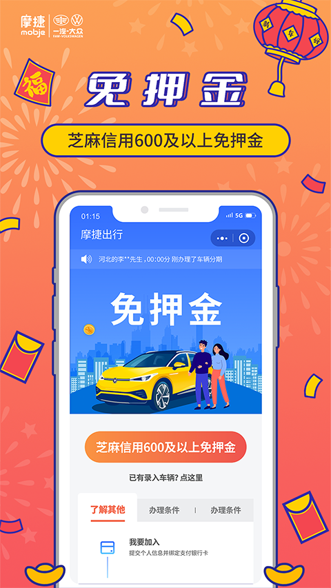 1、摩捷出行,便捷的共享汽车出行平台。 2、摩捷出行目前提供捷达、宝来、嘉旅和迈腾由经济到豪华的车型,后期再加。 3、根据自己的出行需求选择适合的汽车。 4、在线预约租车,智能导航取车还车。功能介绍