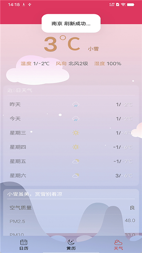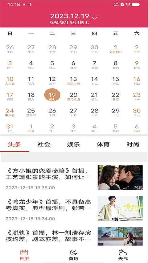 1、月历周历随意换,节日节气假日全。 2、黄历信息一眼看,宜忌吉凶全掌握。 3、天气资讯便捷查,生活出行不用愁。 4、您可以查询当天或当天应避免的好与坏,确保出行安全。蜜柚日历app使用说明