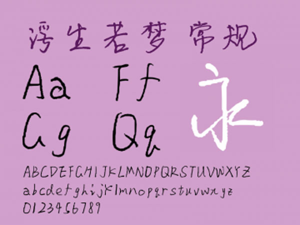 浮生若梦是一款非常有艺术感的中文字体,该字体属于狂傲手迹的二次形变字体,字形更敦实饱满,整体效果非常不错,可以应用于文本装潢、信息展示、网页设计、篆刻制模、数据制作、装潢设计、计算艺术设计、视觉设计、字帖等一切合法应用场景,有喜欢的朋友可免费下载收藏。