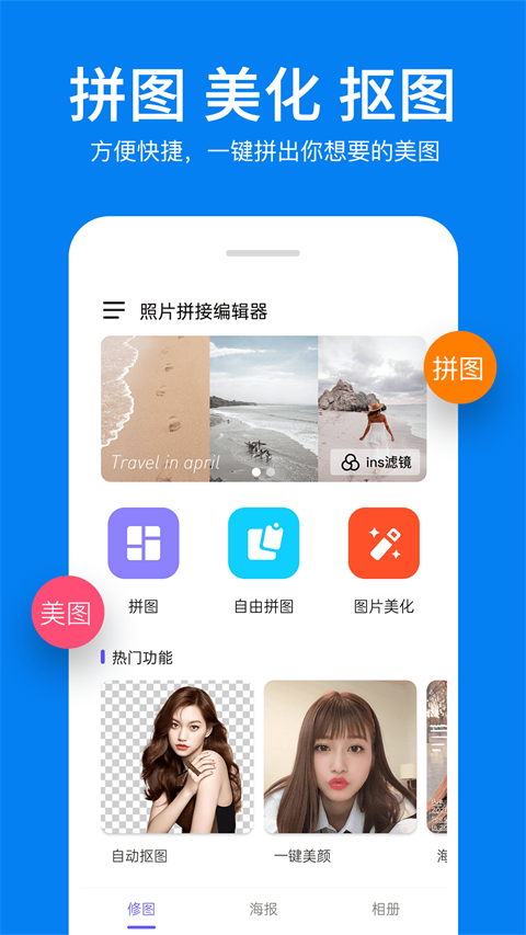- 自由拼图无水印 - 让你的拼图布局看起来独一无二 - 100+拼图布局 - 满足你各种拼图制作&图片编辑需求 - 图片美化编辑 - 滤镜,贴纸,文字,涂鸦......超多美颜功能等你来玩 - 2D/3D镜像模板 - 方便快捷,一键拼出你想要的美图更新日志