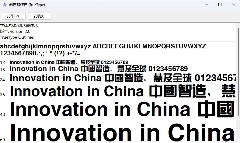 创艺繁综艺是一款笔画端正的繁体字,该字体偏黑体感,骨架较大,笔画较粗,棱角分明,部分拐角比较圆润,使之有一定的亲近感。它较粗的笔体,更容易吸引人的注意,适合用于广告创意,平面杂志,封面宣传等宣传创意性的方面。