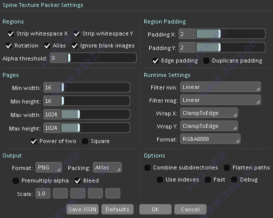 Spine能将图片打包成纹理贴图集,这能提高你在游戏中的渲染效率。Spine 的纹理贴图打包工具拥有很多功能比如剥离空白区域,旋转,自动缩放等等…(主要目的是为了充分利用空间)