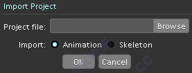 Spine 通过路径查找并导入由其它工具生成的数据文件,它能够识别符合要求的JSON 或二进制格式数据。也可以从别的 Spine 项目中导入骨架和动画。