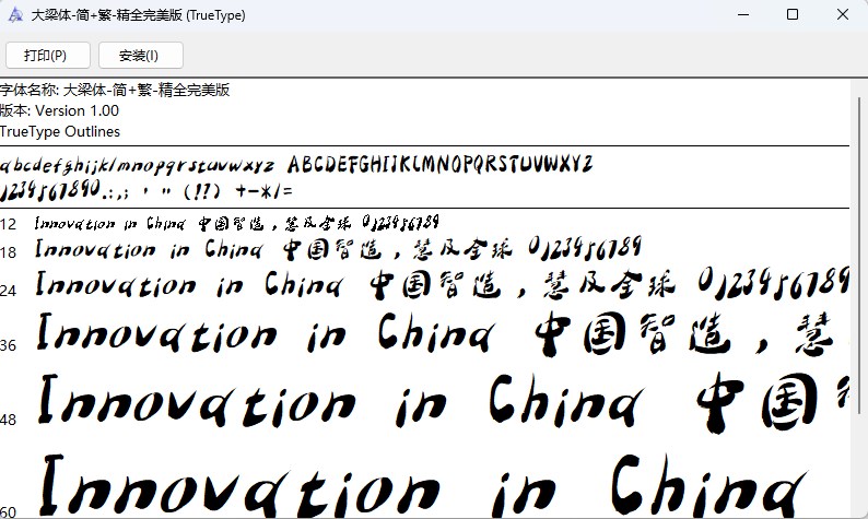 大梁体简繁精全完美版是一款设计方面使用的中文字体,该字体的骨架较粗,字形给人以气势磅礴的感觉。更厉害的是,它不但可以中文英文切换,还可以简体繁体切换,可以说是一物多用。张扬的个性之下,又不失可爱,能够用于平面设计、广告创意、板式印刷等方面,是目前国内最优秀的设计方面的中文字体。