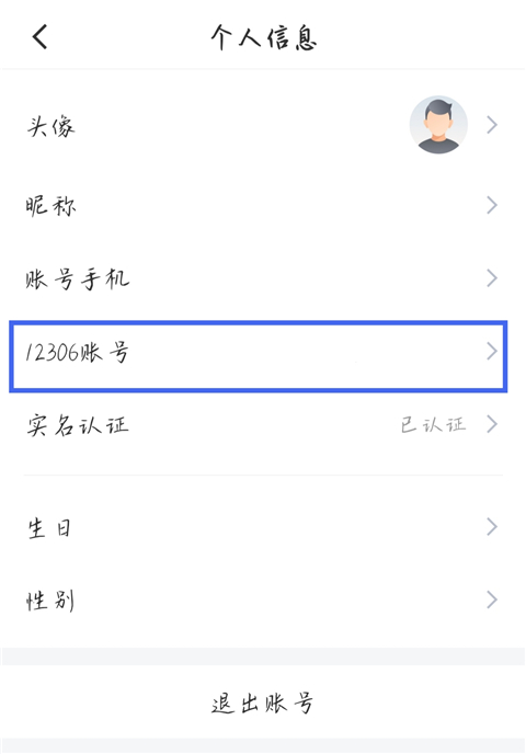 2、点击【12306账号】。