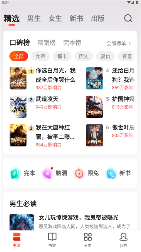 1、【精品小说】 覆盖超人气的网络小说,各类榜单,内容丰富,精选书籍推荐追更! 2、【个性化推荐】 根据你的阅读兴趣,为你挑选专属好书,用内容打动你! 3、【题材丰富】 涵盖都市、玄幻、言情、历史、武侠、仙侠、脑洞、科幻、悬疑、异能、穿越架空、总裁甜宠、轻小说、种田宅斗等等各类小说! 4、【语音智能解说】 听书随心所欲,支持各种情景模式朗读! 5、【优质阅读体验】 仿真3D翻页,离线下载,切换字体,切换背景,夜间模式,精美图书封面,内容整齐排版,几十种细节体验多重呵护!更新日志