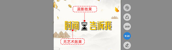 下面以【黑影效果】为例 (文字无艺术效果, 图符为黑影效果)