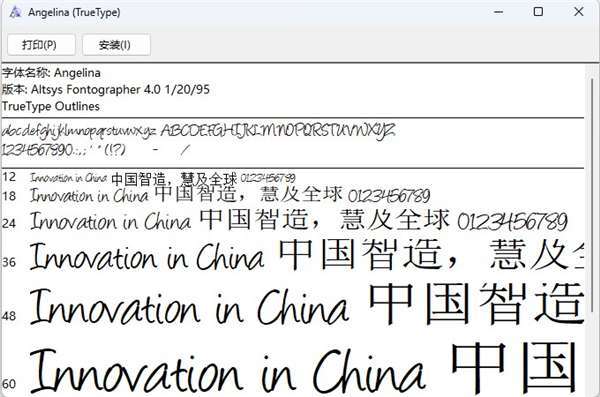 Angelina字体是一种非常适合用作署名的一类字体,具有独特的个人风格。在很多时候、很多地方,我们都会需要用到手写体,比如在广告杂志设计、文档邮件附属签名以及其他时候,一款有个性又好看的签名字体能让你加分不少哦。小编带来的Angelina字体是非常好看的英文手写体,非常适合签名使用,需要的赶紧下载使用起来吧。