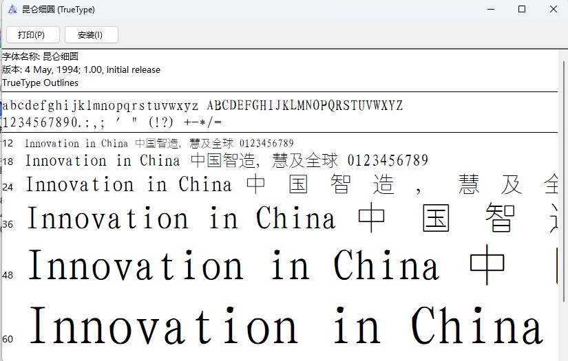 昆仑细圆字体是一款在艺术设计方面使用较多的字体,字体中规中矩,字之间的间距较大,适合正式文档排版字。不过是细圆体,笔触较细,如果做标题则需要加粗甚至做另外的处理。这样就比较麻烦,建议用于个别文章中的使用字。适用于平面设计、报纸杂志、书籍出版等方面。需要的朋友可以在本站下载。