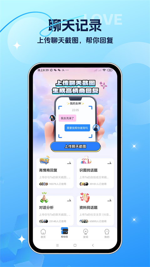 1、精选实战案例,手把手教你,如何撩妹 2、精彩视频教学,导师教你,吸引女生 3、脱单助手神器,展示面,情侣头像,表白工具,超NICE 4、脱单不再困难,让爱变的简单 5、AI话术智能搜索,一键复制秒变,聊天大神软件功能