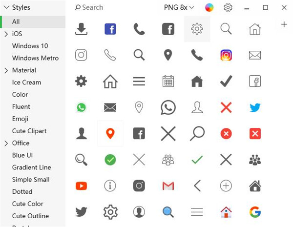 Pichon是一款专业的图标制作软件,软件能够帮助用户将图标拖动到任何软件,软件里面拥有上万中图标供用户免费使用,而且软件多种样式的输出,可以即时重新着色PNG和SVG图标。软件集成了一个庞大的图标库,提供了iOS、Windows 10、Windows Metro、颜色、办公、蓝色Ul、渐变线、简单、iOS字形等多种类型的图标,用户可以在分类下快速查找到自己需要的图标;软件还有各种类型,以及各种电话、家庭和设置等,所有这些都是可编辑的矢量图标;您也可以重新着色,将图标添加到代码中,快速搜索图标,并收集常用或最喜爱的图标;适用于图形设计师和几乎所有需要对软件产品或网站外观进行个性化设置的用户。