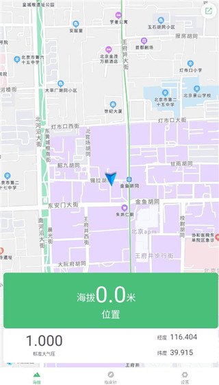 1、软件打开定位,定位后就会自动测量显示海拔高度、大气压值、经纬度等参数值,方便用户对所处位置的一个了解