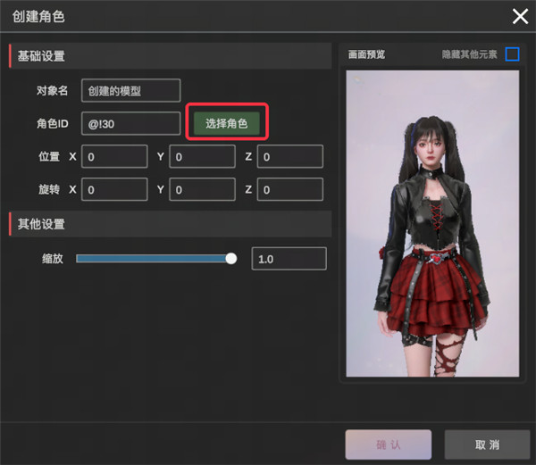 简介: 创建模型,直接在画面中增加一个idle状态的模型。 隐藏模型,隐藏在当前剧情页出现过的模型,包括创建模型指令、演出中出现的全部模型。 创建模型: 点击对象名,可以修改模型的名字;点击选择角色按钮,可以选择模型。