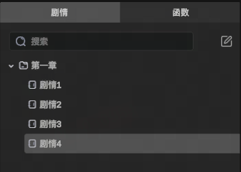 剧情: 用来制作作品内容,有编程基础的开发者可以把它看做脚本,点击右上角新建按钮可以新建剧情。