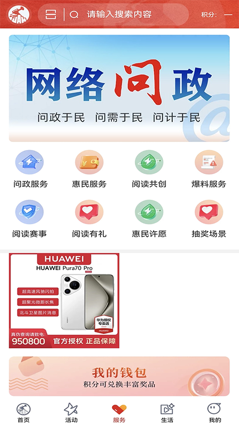 1、热点推荐 每天会有各种社会热点内容推荐通过阅读都可以知道国内发生什么 2、频道管理 分类频道都可以自己管理完全可以将喜欢看的平台添加到首页 3、新闻直播 还有各大媒体进行新闻直播可以为大家提供很多好看的新闻 4、便民服务 也会有简单的便民服务让用户通过软件就可以解决生活中的问题 5、内容权威 内容都是非常真实的大家可以了解到最权威的信息 6、办事超快 在线办理事务也非常快速都可以不用排队 7、实时更新 都会更新实时新闻每天都可以为大家推送信息 8、转发评论 可以将新闻转发也可以在看的时候通过评论一起交流更新日志