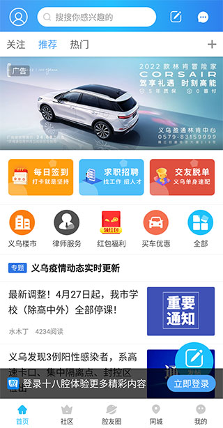 2、切换到【社区】页面,我们还能看到义乌城事、义乌楼市等小功能。