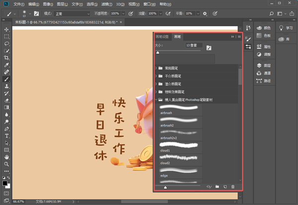 3、之后再画笔工具,就可以看到添加成功的懒人集合画笔素材包了。