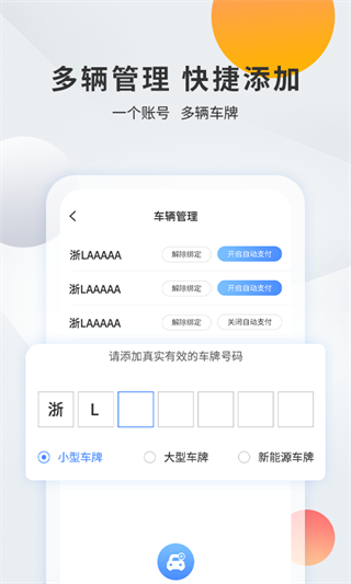 4、在首页中查看自己的详细账单信息,了解账单明细,一键添加新的车辆。