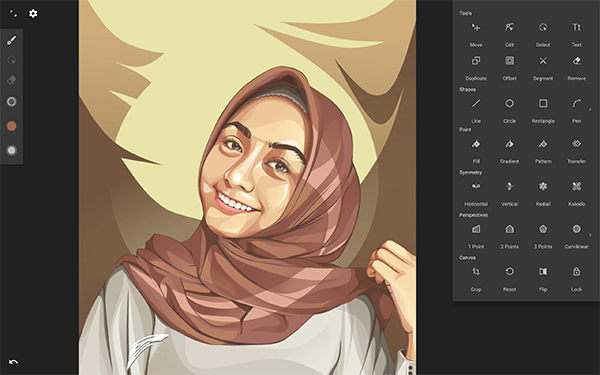 1、无与伦比的体验: 无限的画布(平移,缩放或旋转) 直观的路径编辑 布尔运算 对齐和分布对象 2、一流的工具: 尝试四种对称类型 无限层 使用历史记录滑块进行无限撤消;从头到尾进行擦洗 使用钢笔工具轻松构建形状 使用五种不同的透视指南绘制3D城市景观 文本工具:路径上的水平,垂直,圆形或文本 3、简化的界面: 很简单。它是有组织的。没关系 将您喜欢的工具移至顶部栏,以便快速访问 用两根手指拖出色轮 4、高级功能: 变换工具:平移,缩放,旋转,翻转,扭曲和倾斜 渐变和图案填充 旋转和翻转画布 自动形状检测 网格供参考或捕捉 矢量化:将任何图像转换为完全可编辑的矢量路径 5、导入和导出: 导入和导出SVG 从图库,照相机或搜索网络中添加图像 将图像导出为JPEG,PNG或SVG 共享到Infinite Studio社区或Instagram 通过ColourLovers搜索数百万种颜色,调色板和图案更新日志