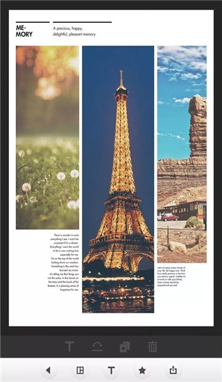 1、专业照片编辑器 摄影师钟爱的12个主题的180个滤镜 巧妙地带来各种心情和漏光的纹理 2、专业的编辑工具 具有300多种字体的文本功能 560个贴纸和92个背景图案 3、拼贴和杂志 像杂志一样拼贴照片。 135种流行的杂志式布局 4、美容相机 美容滤镜专为完美的自拍而设计。 实时调整美容效果的强度。Moldiv官方版使用教程