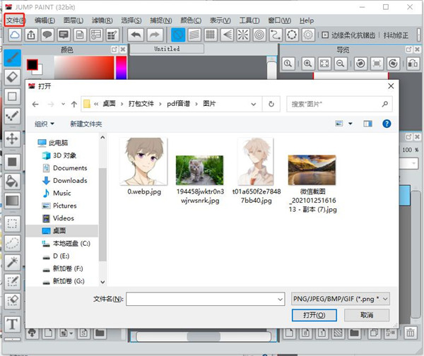 5、点击文件的图像打开按钮可以添加图片文件