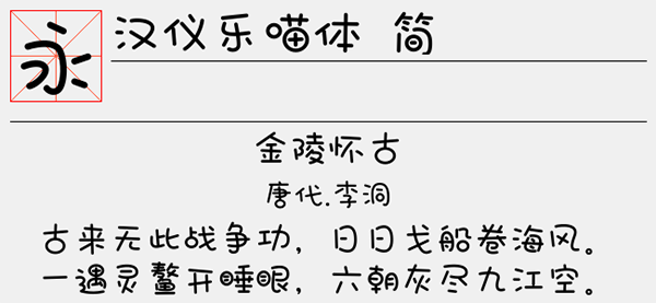 汉仪乐喵体简字体是一款非常灵动可爱的字体,用最单纯的线条语言表达最跳跃真实的韵律,带有朴实、童真、活泼、俏皮可爱、亲切之感。字体笔画十分可爱圆润,给人一种萌萌哒的感觉,十分受到年轻人群的喜爱。适合应用于艺术设计、平面宣传设计、网页设计、文本装潢、信息展示、篆刻制模英文、数据制作、装潢设计、视觉设计、字帖等一切合法应用场景,有喜欢的朋友可免费下载收藏。