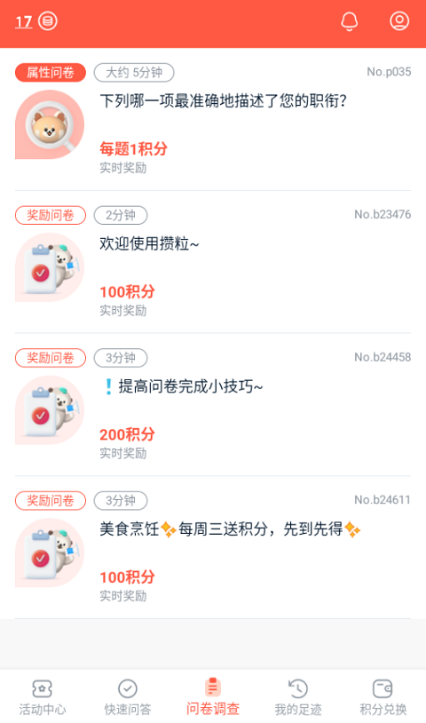 1、个性化问卷定制:app提供个性化问卷定制功能,根据您的兴趣爱好和需求,为您量身打造适合您的问卷调查,让您参与更有针对性的调查活动。 2、多样化奖励选择:除了积分兑换奖励外,攒粒还提供多样化的奖励选择,包括优惠券、礼品卡等,让您有更多选择,满足不同需求。 3、社区互动平台:攒粒设有社区互动平台,让用户可以分享调查经验、交流心得,与其他用户互动,增加参与乐趣。 4、实时积分更新:应用具有实时积分更新功能,让您随时了解自己的积分积累情况,激励您更积极参与问卷调查,赚取更多奖励。更新日志