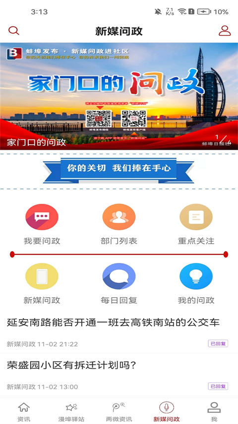 1. 在线咨询与回复:用户可以在线向政府单位提出问题和建议,政府单位也能够及时回复用户的咨询,实现在线问政互动。 2. 新闻阅读:用户可以在应用中阅读最新的蚌埠地区新闻,包括政府发布的重要通知和社会热点事件。 3. 活动发布:用户可以查看并参与应用中发布的各类线上线下活动,丰富生活,扩大社交圈。 4. 才艺展示:用户可以在应用中展示自己的才艺作品,包括音乐、摄影、绘画等,与其他用户分享交流。更新日志