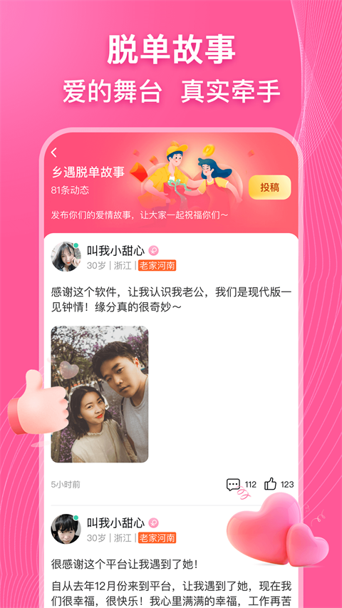 乡遇交友相亲是真实的。乡遇交友是一款在线交友平台,用户可以在该平台上寻找匹配的对象进行交流和约会。平台支持多种聊天交友的模式,用户可以选择喜欢的方法去搭讪,一键获取对方的资料,并可以定位同城,寻找附近的人。 虽然像所有在线交友平台一样,乡遇交友也存在一些虚假信息和欺诈行为的风险。对此,乡遇交友会采取一些措施来确保用户信息的真实性,例如要求用户进行实名认证、提供真实照片和详细个人资料等。 虽然乡遇交友相亲存在真实性的争议,但是根据一些用户的评价,该平台还是相对比较真实的,能够满足用户的交友需求。 但是,在任何情况下,用户都应该保持警惕,避免泄露个人信息和财产安全。同时,用户应该理性看待平台的搭讪和约会功能,不要轻易相信对方的承诺和信息。更新日志