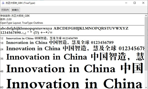 方正大标宋gbk字体是一款赏心悦目、百看不厌的中文字体,方正大标宋gbk字体端庄严谨,笔划粗细分明,布局凝重沉稳,深受广大设计师的喜爱。适用于文本装潢、信息展示、网页设计、篆刻制模、数据制作、装潢设计、计算艺术设计、视觉设计、字帖等一切合法应用场景,喜欢的朋友不妨来下载试试!
