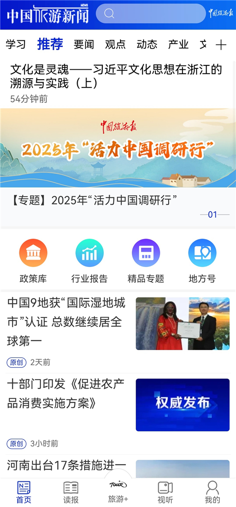 1、专注为旅游 业管理者、从业者提供专业、权威、实用的深度旅游信息产品及服务,包含头条、声音、政策、案例、时评、数据、视频、直播八大栏目,以及入驻、超市、互动、读报四大功能。 2、入驻功能是为了更加快速有效地发布行业新闻、传播先进做法和经验,更好打造政产学研之间的互动交流平台。 3、旅游机构及个人入驻后,可通过中国旅游新闻app后台自行上传稿件、视频,通过审核后即可发布信息,对于优质信息,APP首页将进行重点推荐。软件优势