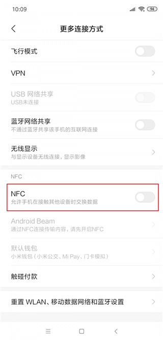 1、首先进入手机设置页面打开nfc功能,找到并打开。