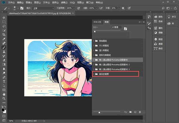 3、之后再画笔工具,就可以看到添加成功的懒人集合画笔素材包了。