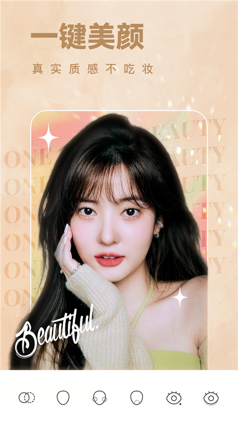 1、原生质感 小仙女们质感生图的终极秘诀,不磨皮保留皮肤细节,不吃妆拒绝改变色号,不假面呈现高级滤镜 2、超多超A滤镜 轻美颜风格妆容,超A质感搭配神仙滤镜,韩系、日系、ins、欧美,找到适合你的风格,让你的每一张自拍都高级! 3、智能美颜 智能识别你的脸型和五官,为你定制专属美颜方案。从脸部到身材曲线,每个细节都可以随意调整,给你超自然的美颜效果!软件特色