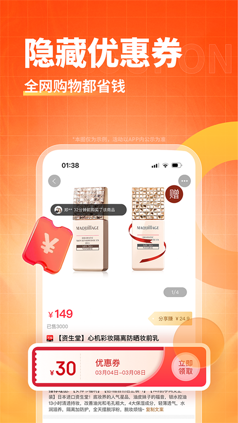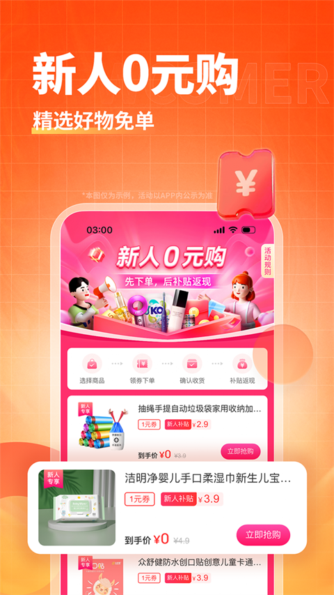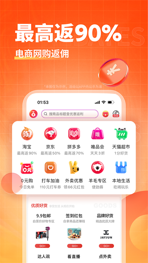 1、每天更新,大额券仅限一淘渠道,用券立减现金 2、同步聚划算,淘抢购的精选活动,省上更省 3、汇集淘宝,天猫海量返利商品,覆盖面广 4、精选商品,低价超值,9块9包邮还返利功能介绍