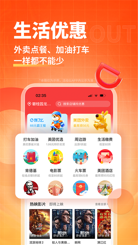 4、在“生活”中可以购买到电影票、加油和电费充值、影视频充值等折扣福利。