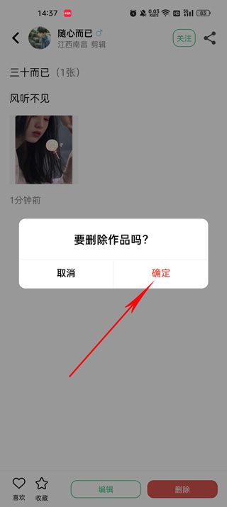 4、点击下方的删除即可将照片进行删除自拍图。