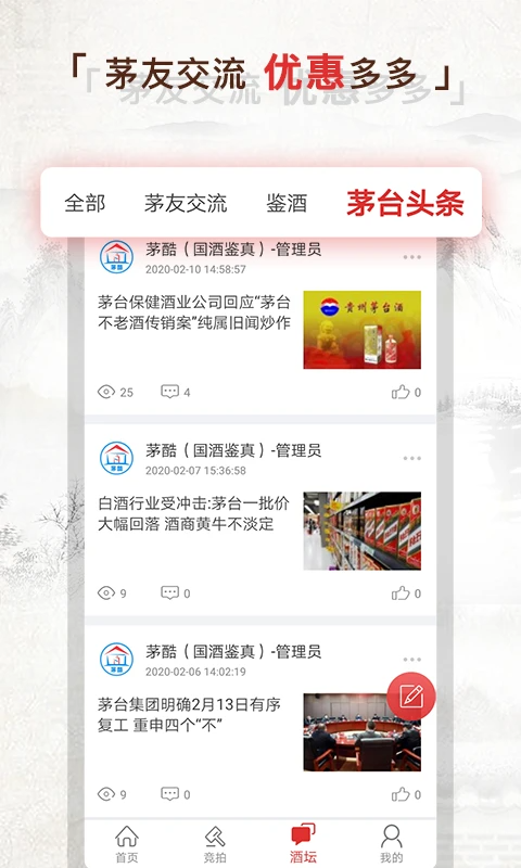 1、茅台鉴别:资深专家在线免费为您提供鉴别茅台服务,酒酷为您消费茅台酒的同时保驾护航。 2、茅台回收:免费为全国茅粉与当地一线回收提供信息,促成双方交易,为大家提供方便。 3、茅台商城:正品茅台掌上商城,一键随心购。在线提供飞天茅台、五星茅台、茅台年份酒系列、茅台生肖系列、茅台纪念酒、珍品茅台、茅台系列酒等茅台酒品应有尽有,业内商家驻酒酷,优选茅台值得为您推荐! 4、茅台拍卖:0元起竞拍正品茅台,参与竞拍即可获得红包奖励。直播竞拍更有现金红包奖励、酒品优惠限时享不停! 5、茅台酒坛:茅台酒新鲜资讯实时放送、名家点评;专业茅台酒防伪知识讲解。在领悟茅台文化的同时,在线交流茅台心得、教你打开茅台酒的正确方式。软件优势