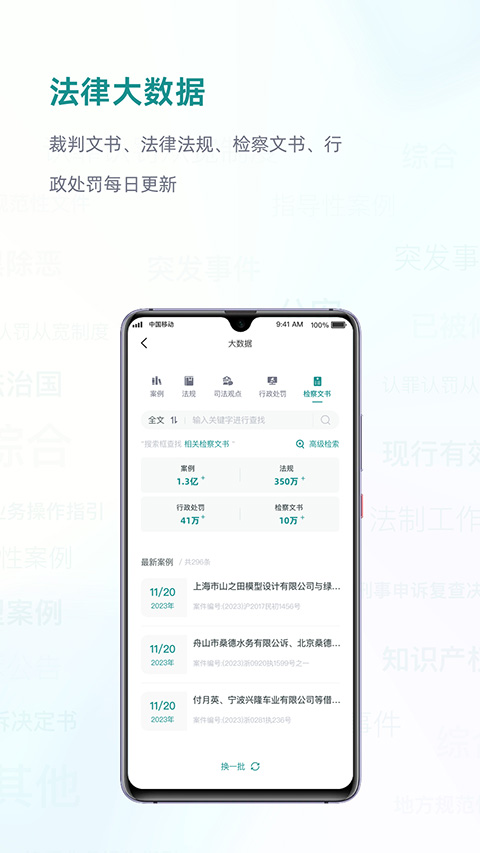 1、引入人工智能技术,智能化文件管理,智能匹配过往案例,文档在线编辑保存 2、审批便捷,即时聊天,视频会议,团队协作更高效,合同全程电子化 3、流程化、可视化工作指引模板、可视化任务 4、海量的法律法规、司法解释、法律程序、智能化文件管理 5、系统消息推送提醒,提高律师工作效率再也不用担心会忘功能介绍