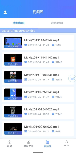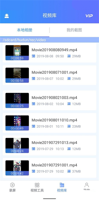 5、最后退回软件,先点击底部【视频库】选项,接着根据下图所示,即可查看所有录制的视频