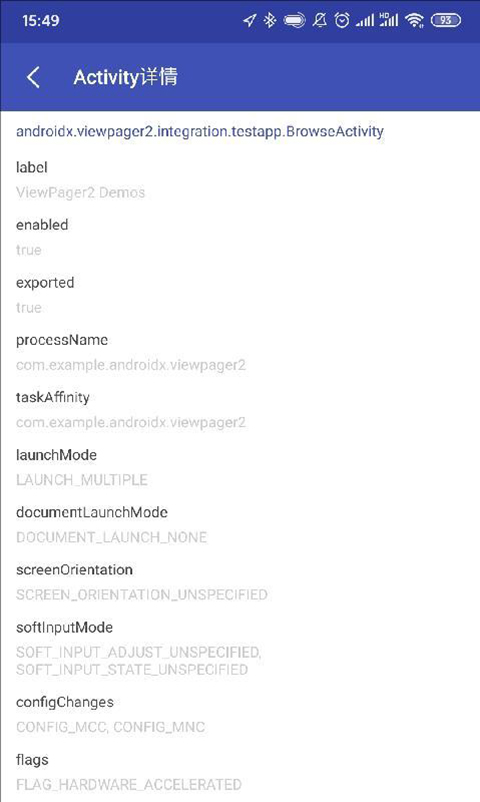 1、反编译其他应用(android8.0+) 查看其他应用资源及其他文件,更加快捷便利。支持丰富样式查看代码内容。 2、屏幕拾色 显示当前坐标点的RGB色值与当前坐标。 3、查看当前Activity信息 查看其他应用当前的Activity包名、类名。 4、查看/导出数据 查看/导出其他应用AndroidManifest文件,导出其他应用apk、so文件。 5、查看已安装应用信息 显示4大组件列表以及详细信息、应用权限相关信息、签名信息以及大量基础信息。 6、应用统计 统计手机已安装的应用信息,包括:min sdk,target sdk,compile sdk,签名算法,应用来源等。 7、权限统计 根据权限将应用分组,查看每个权限使用情况。 8、截图详情 在截图之后,将部分屏幕与系统信息添加到截图之中,可通过通知栏快速进行分享。 9、查看其他应用布局结构 查看其他应用布局结构,元素信息、元素间位置关系、元素嵌套链、包含当前点击坐标的元素列表。 10、查看连接信息 显示当前连接情况,包含Wifi、移动网络、蓝牙与NFC。 11、查看设备信息 包含屏幕、系统、存储、芯片、硬件、ID、特征、电话、相机、传感器、电池、虚拟机、编解码器以及其他大量相关信息。 12、文件系统 显示文件系统相关信息。软件亮点