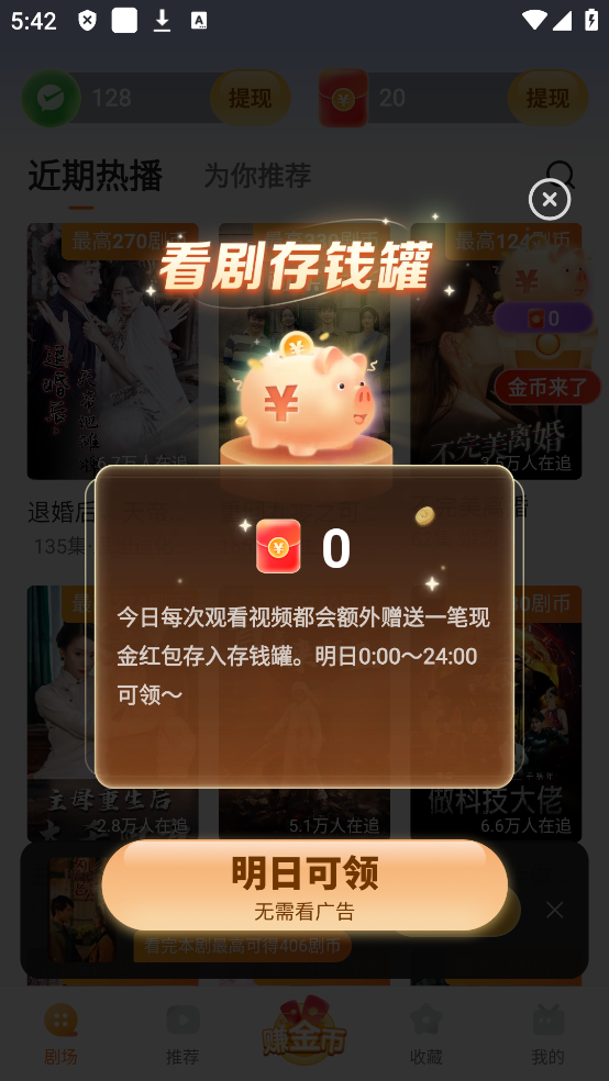 2、“看剧存钱罐”会将额外赠送的一笔现金存入存钱罐
