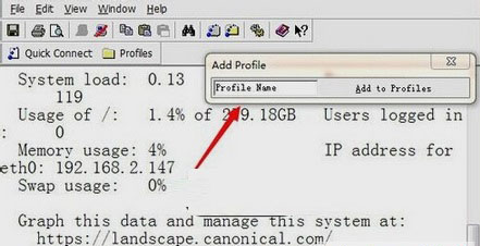 4、进入系统后,会出现add profile页面框,可以在里面输入一个名称做为标识,下次在进入系统时,就不需要输入用户名之类的,相当于快捷方式
