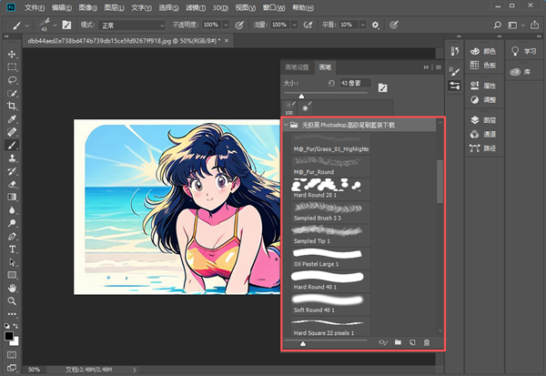 3、之后再画笔工具,就可以看到添加成功的懒人集合画笔素材包了。