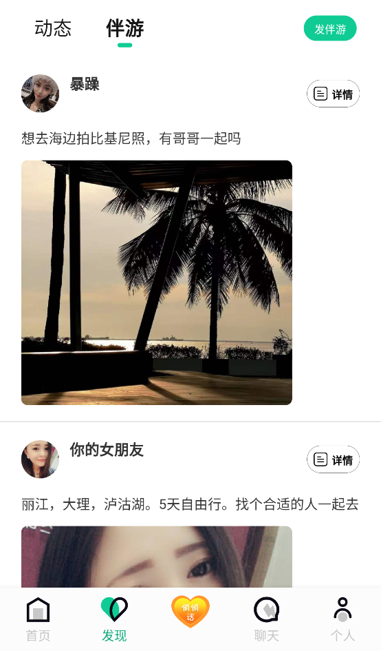 2、app还有伴游板块,有想出去旅游但是找不到小伙伴的可以在这里试一试。