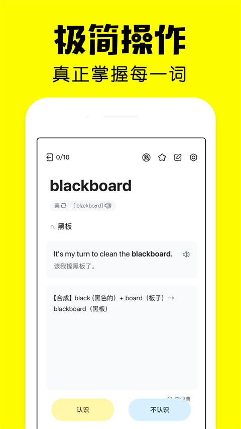 1、卡片模式:认识?不认识?让你真正掌握每一个单词 2、自主选词:每天背哪些单词,你说了算 3、单词助记:谐音、词根词缀,多维度和单词建立关联,帮助记忆 4、巩固训练:选择释义、拼写单词,多种题型让你全方位掌握单词 5、单词词典:随时随地查单词,方便又好用 6、生词本:学习中遇到的生词,一键加入生词本 7、记忆曲线:为你量身定做自己的记忆曲线 8、自定义词库:创建你的专属词库,只背你想背的单词 9、自建笔记:释义、例句、助记、拓展,全部都可以自定义 10、超全词库:覆盖四六级、考研、留学、小学、初中、高中等各版本教材更新日志
